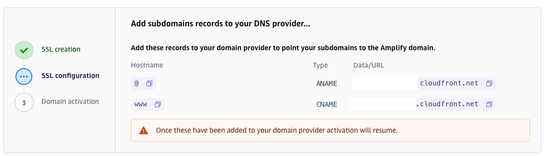 Go to Hosting > Custom domains, set up the custom domain we owned. I already bought this domain on AWS Route 53 for a while, so I don’t demonstrate how to buy domain on AWS.