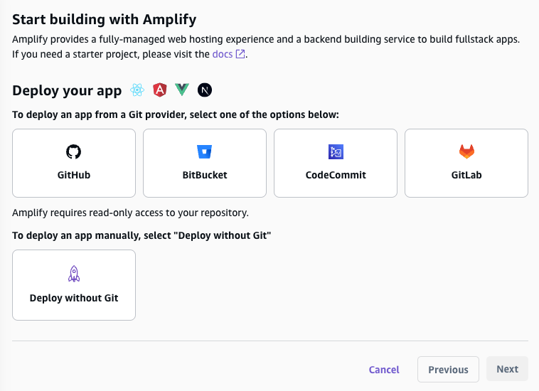 AWS Amplify is an easy CI/CD tool for deployment. While we can actually follow the Astro documentation, I prefer to directly operate on AWS dashboard with GUI.